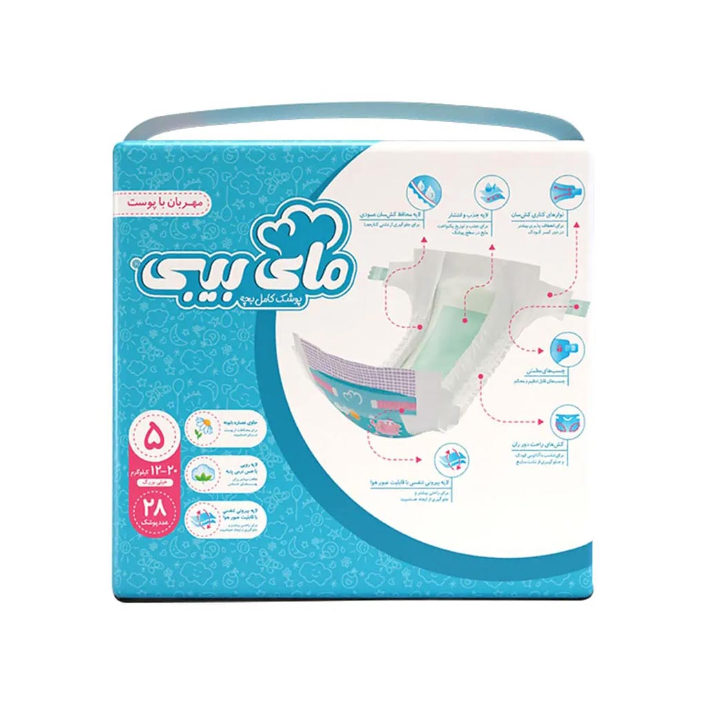 پوشک کامل کودک سایز ۵ مای‌بیبی محصولی حرفه‌ای برای کودکان ۱۱ تا ۲۵ کیلوگرم است که نیازهای مادر و کودک را به‌طور کامل پوشش می‌دهد.